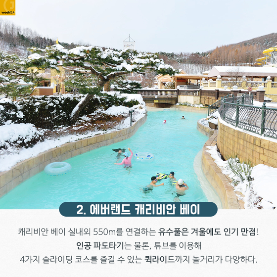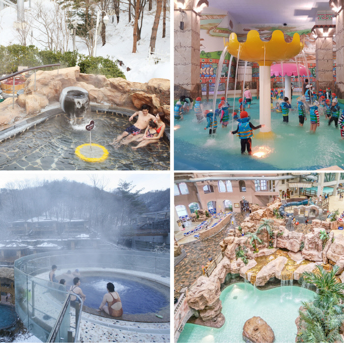 - 스플라스 리솜 충남 예산군에 위치한 스플라스 리솜은 온천수로 채워진 다양한 풀과 스파 시설로 유명합니다. 겨울철에도 따뜻한 물속에서 즐길 수 있는 다양한 놀이기구가 마련되어 있어 가족 단위 손님들에게 특히 인기가 높습니다.