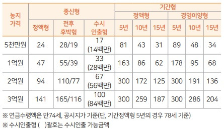 두 번째는 수익인출형으로, 농지의 가치에 따라 지급 금액이 달라질 수 있습니다.