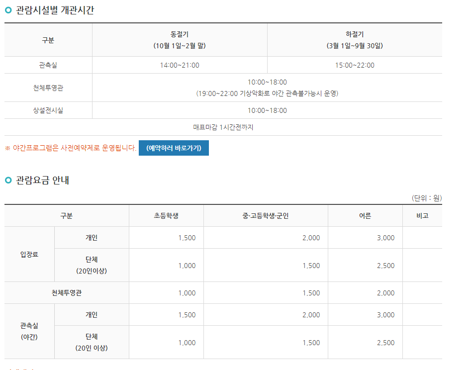 천체투영관과 관측실이 있고,개관시간을 확인하고 가시기 바랍니다.