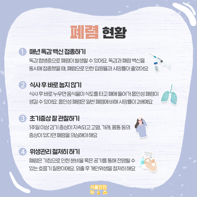 폐렴에 대한 올바른 정보와 예방 방법을 알고 실천하는 것이 중요합니다. 건강한 삶을 위해 항상 주의하고 관리하는 습관을 기르시기 바랍니다.