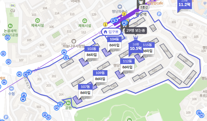 104동과 103동이 86타입중 앞동에 배치되어 있다