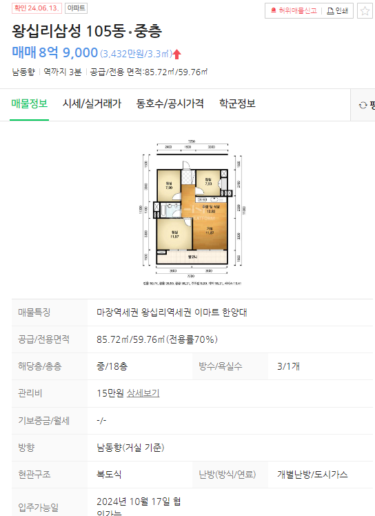 [20240703 시세조사_예나] 성동구 마장동 왕십리삼성 시세