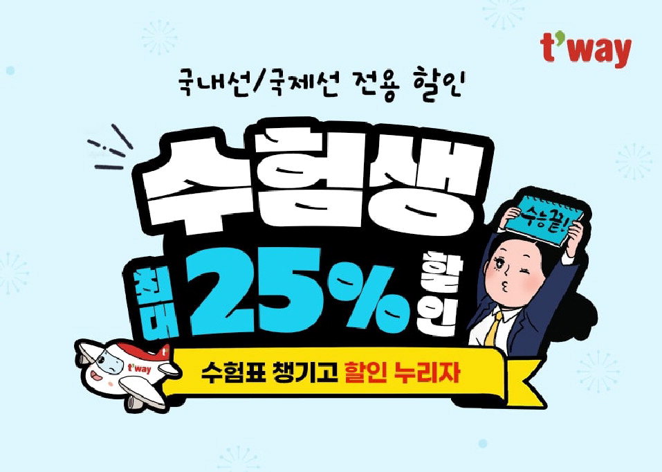 티웨이항공, 2025 수능 응시자 항공권 할인 나서